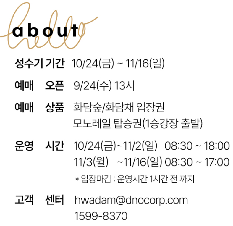 올가을, 성공적인 예약은 단풍을 온전히 즐기기 위한 첫걸음입니다. 미리 예약을 준비한다면 매진에 대한 불안 대신, 여유로운 마음으로 숲길을 거닐 수 있습니다. 또한 예약과 동시에 방문 루트, 교통편, 모노레일 이용 계획까지 미리 세운다면 훨씬 편안하고 만족스러운 여행이 됩니다.