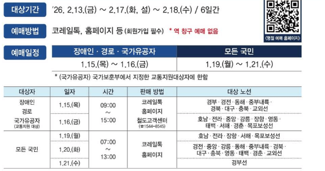 - 2026 KTX 설연휴 승차권 예매 개요